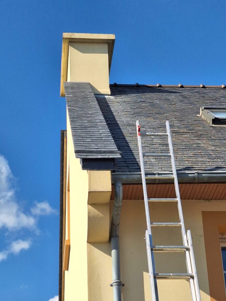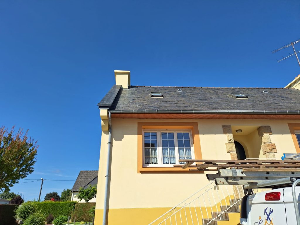 Pose d’un revêtement en ardoise pour protection et valorisation de la façade.